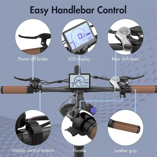 El sillín acolchado de silicona y la suspensión de la horquilla delantera amortiguan los impactos y proporcionan comodidad durante los trayectos largos. La altura del manillar y del sillín puede ajustarse para adaptarse a personas de diferentes estaturas.