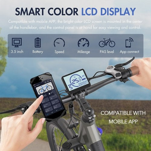 El monitor LCD en color de 3,5"" ofrece una cómoda visualización de los datos de conducción como la velocidad, el kilometraje, el nivel de PAS y la duración de la batería, compatible con la aplicación móvil para comprobar el registro en cualquier momento.