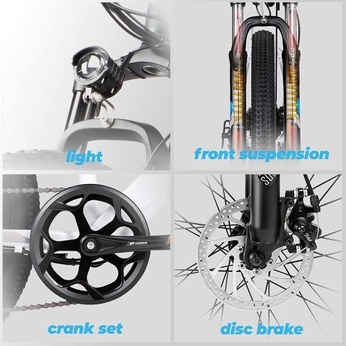 Esta bicicleta eléctrica cuenta con un potente motor de 350W y una batería de litio de alta capacidad de 11,6AH que le permiten recorrer entre 25 y 30 millas en modo eléctrico puro y entre 40 y 50 millas en modo asistido. Está fabricada en aleación de aluminio para garantizar una gran resistencia y rigidez que admite una capacidad de peso máxima de 120 kg. Con un cambio de transmisión de 7 velocidades, sistema de suspensión delantera y neumáticos de 26 pulgadas, esta bicicleta eléctrica es una gran opción para los desplazamientos y viajes.