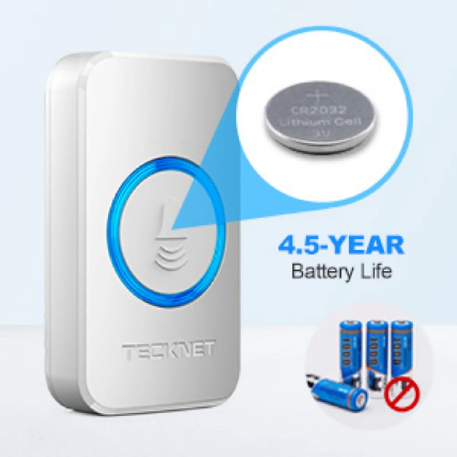 TECKNET HWD01888 Timbre inalámbrico 5 volúmenes 60 tonos LED alcance 400m - Blanco