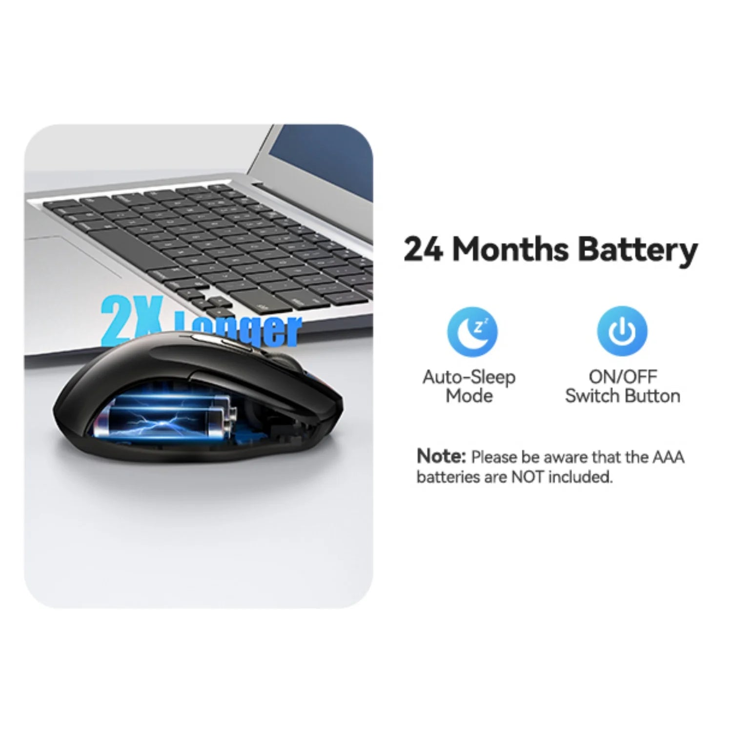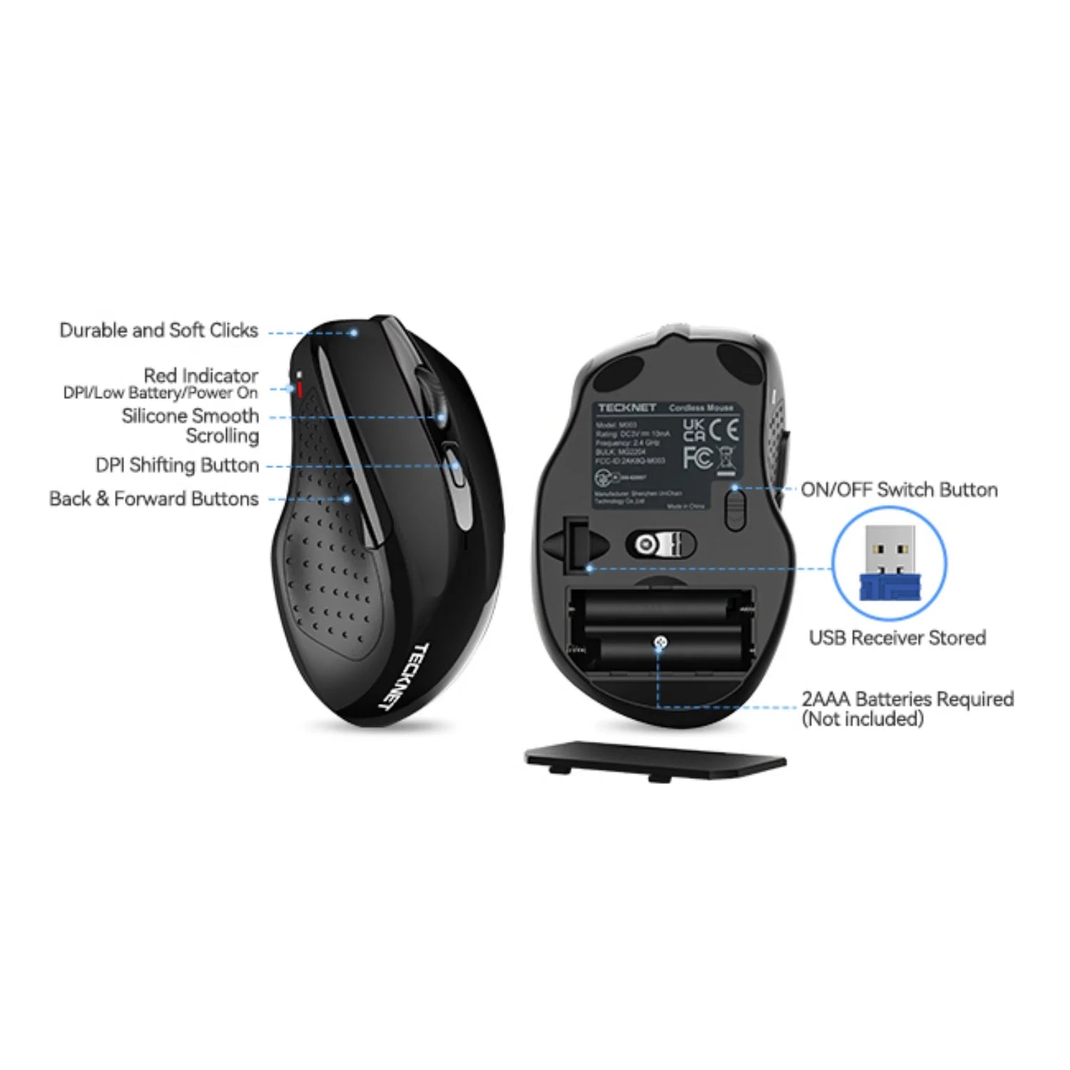 El ratón inalámbrico TECKNET garantiza una conexión fiable con una distancia de trabajo ampliada de hasta 15 m (49 pies) y elimina retrasos, interrupciones e interferencias. Su diseño ergonómico con forma contorneada y suave agarre de goma garantiza comodidad durante todo el día.