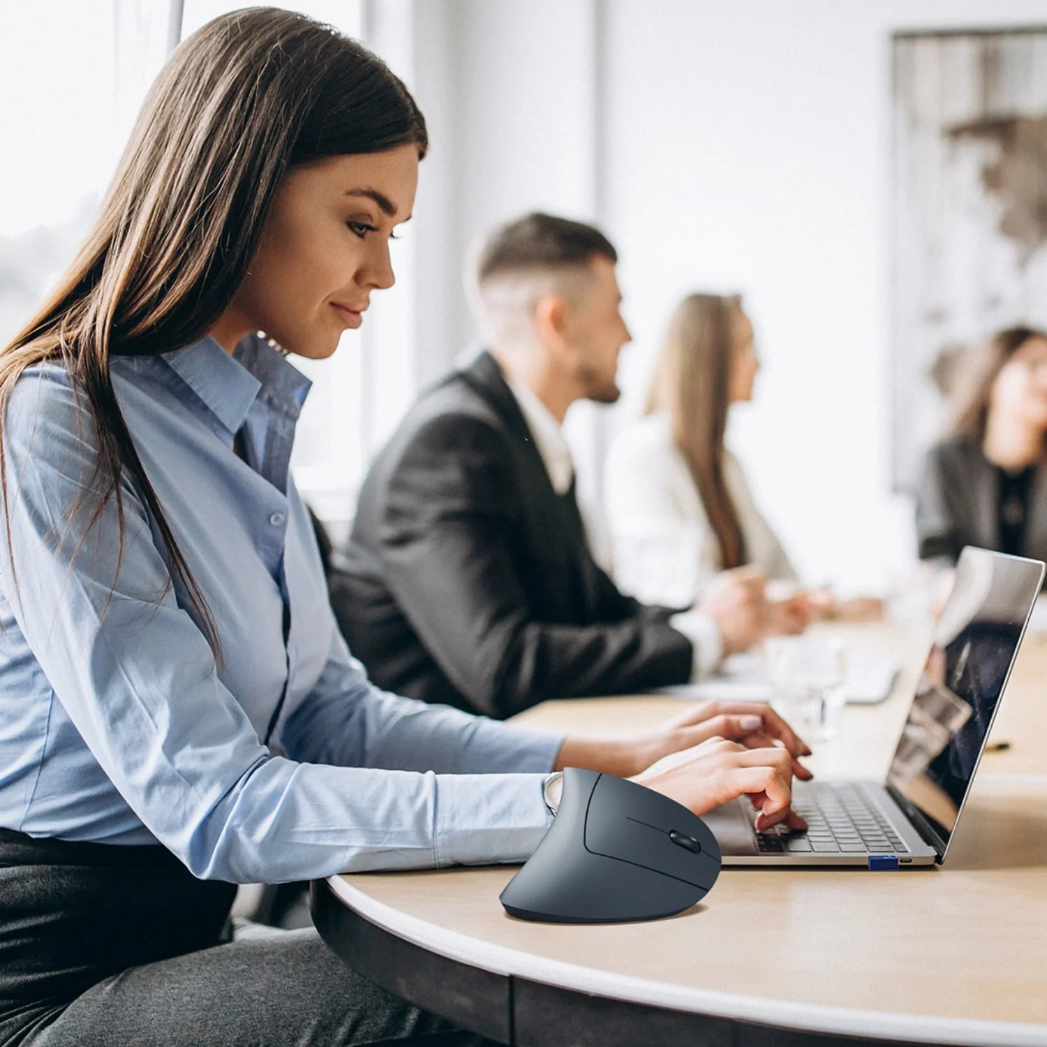 El ratón ergonómico vertical le permite ajustar el brazo y la muñeca a una posición cómoda, reduciendo la tensión muscular del brazo para un movimiento más cómodo y menos estrés.
