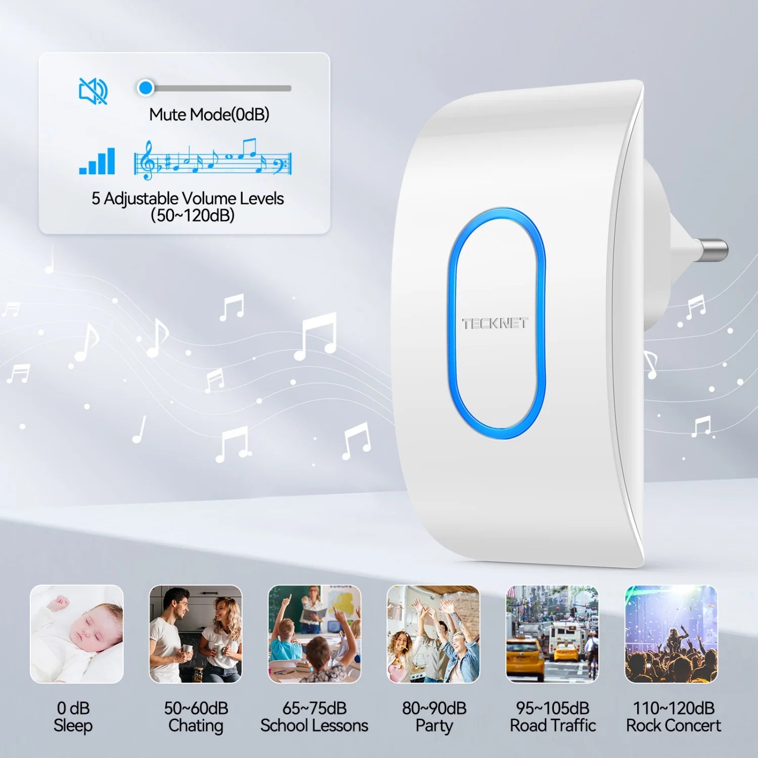 TECKNET TK-WD004 Timbre Inalámbrico Resistente Agua 60 Tonos 400m  - Blanco