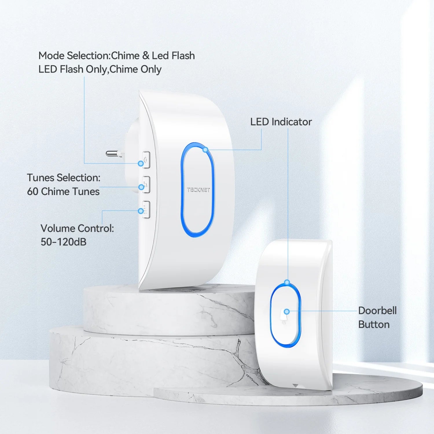 TECKNET TK-WD004 Timbre Inalámbrico Resistente Agua 60 Tonos 400m - Blanco