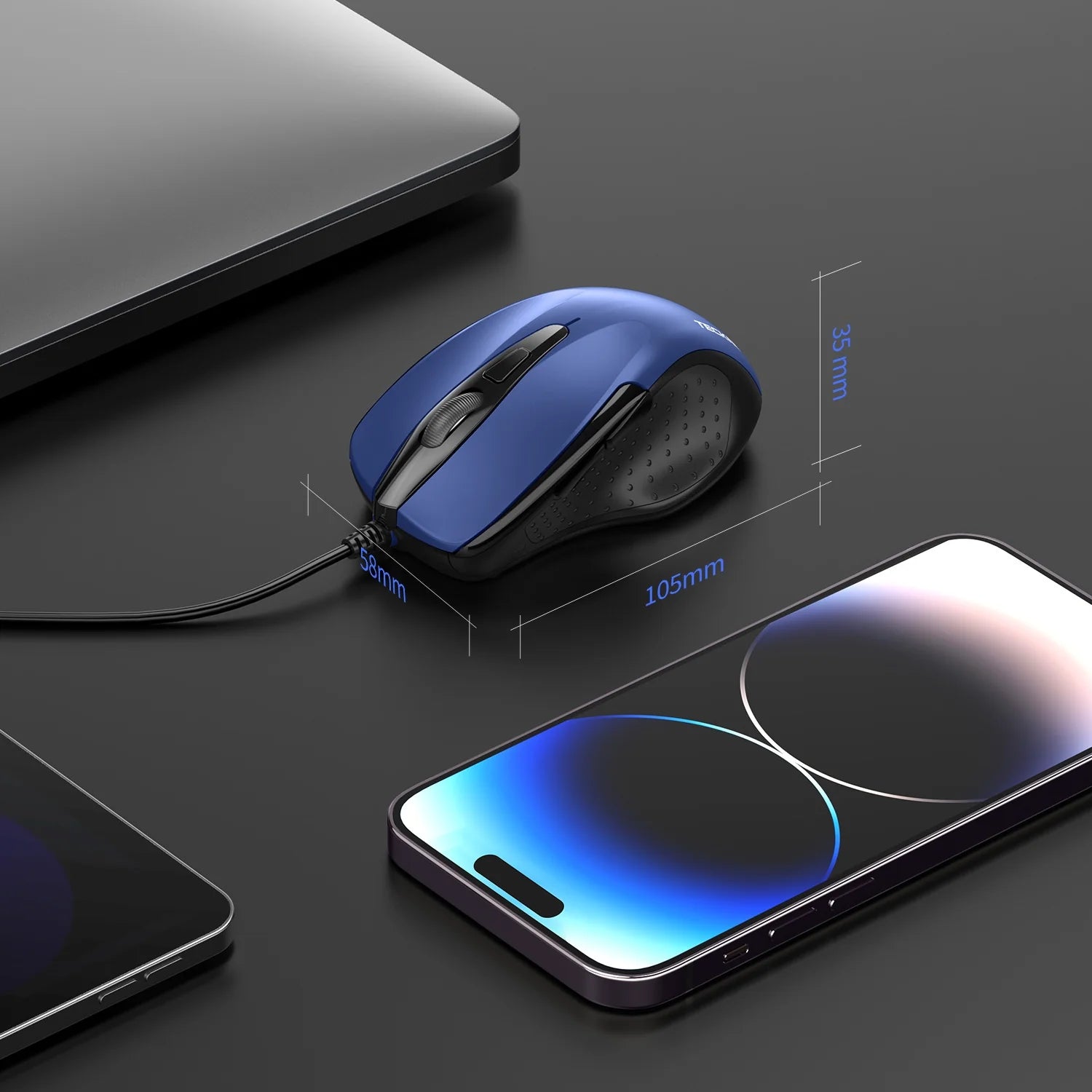 El ratón con cable TECKNET con tecnología Tru-Wave proporciona un control y seguimiento del cursor precisos e inteligentes en diversos tipos de superficies, incluso en superficies lisas con vidrio.