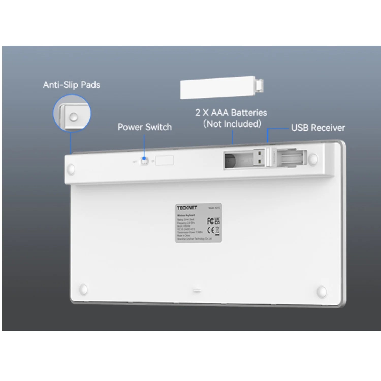 TECKNET X315 Teclado Inalámbrico Ergonómico - 2.4GHz - 78 Teclas  -Silencioso  - Plateado