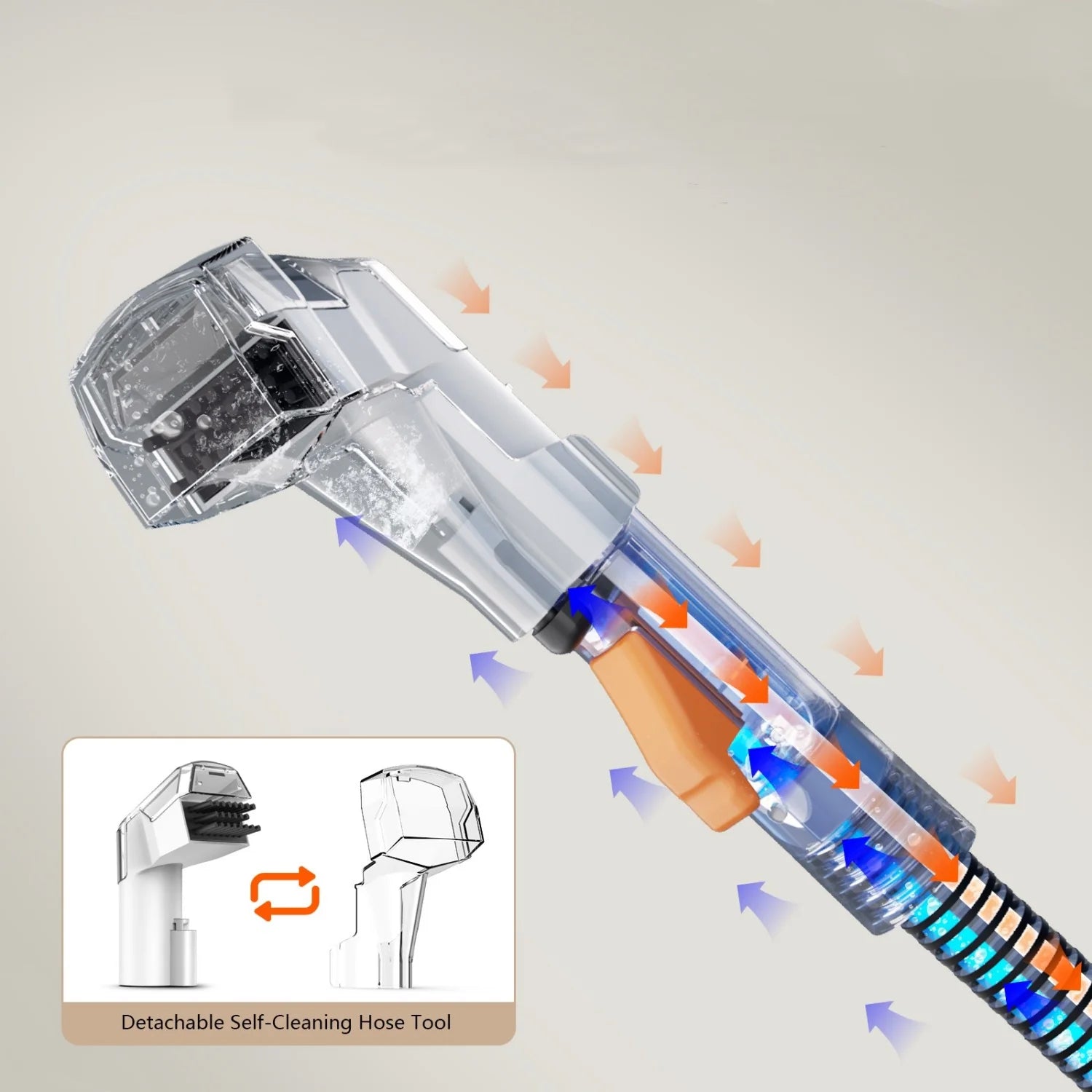 Nuestra aspiradora para alfombras cuenta con una potente potencia de 450 W y una impresionante potencia máxima de succión de 11 kPa, lo que garantiza una limpieza profunda y exhaustiva de manchas en alfombras y tapicerías.